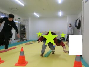 最初は障害物競走!子ども達はくじでどの先生と勝負するのか決めるのでドキドキです💗